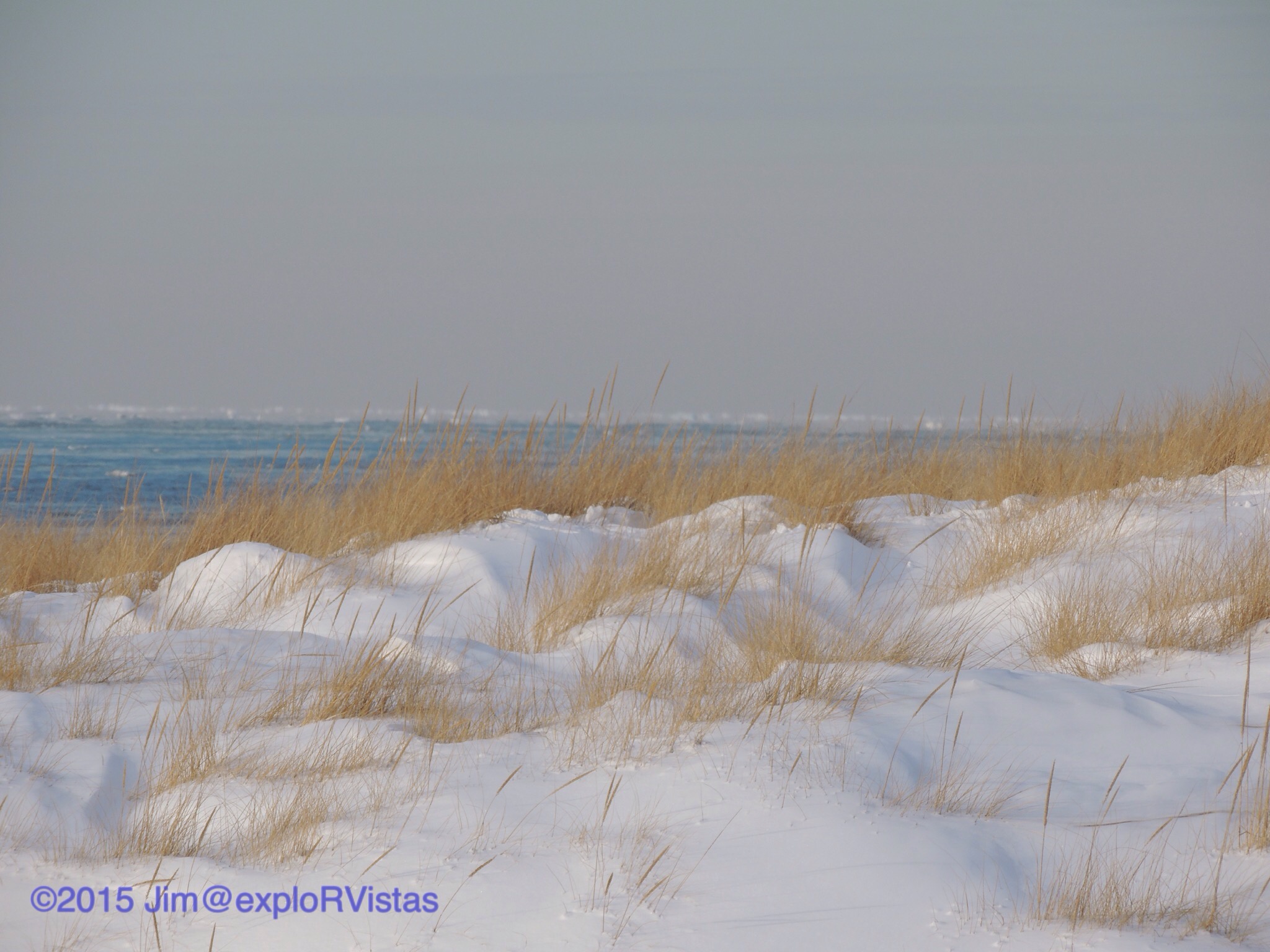 You cannot help but be in awe of the power of wind and ice. It will completely tear up shorelines, buildings and anything else in its way. I love the pictures of the snow and sand, very “cool”!
