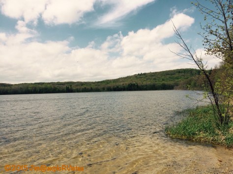 The launch is decent, even for small, trailered boats. There were two aluminum boats on the lake while we were there. The lake itself measures in at approxametely 2/3 of a mile across, and is somewhat round in shape. The bottom appeared to be sandy, and the water was clear.