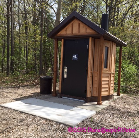 This beauty was at the boat launch. It was extremely clean, had no odor, was handicap accessible, and had fully stocked hand sanitizer and toilet paper dispensers. The interior is all one piece, no-seam Fiberglas, so they are easy to keep clean. Very nice, indeed. 🙂