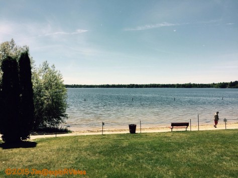 The park has a small beach, and is located next to the state boat launch. Fife Lake is best described as one mile in diameter, and is fairly close to symmetrical. There are two small islands in the southwestern portion of the lake. This photo looks towards those islands, and the cottage Diana’s parents owned is just to the left of the islands and just to the right of the tree in the foreground.
