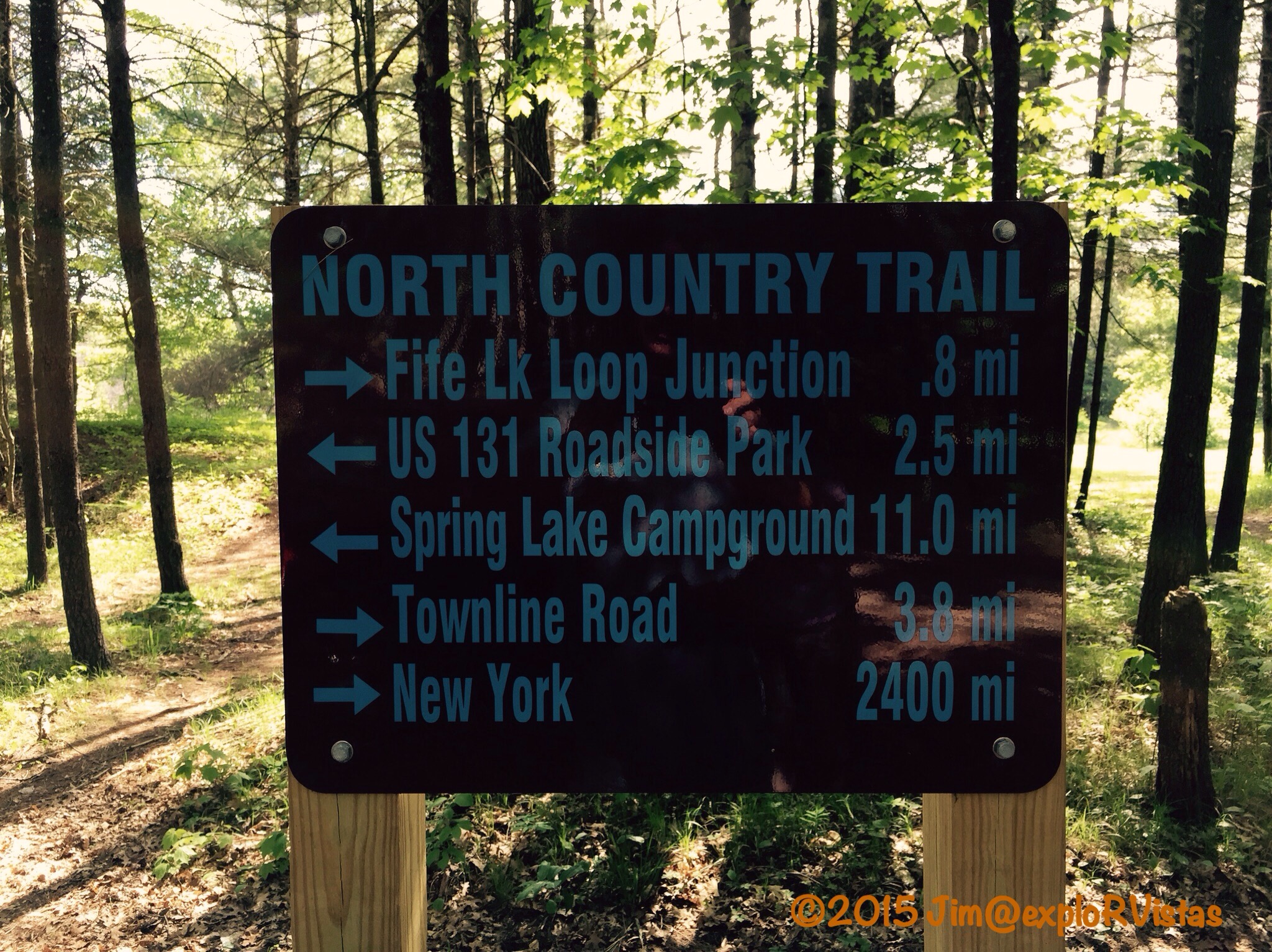 We did find this trail sign though. Looks like an easy 2400 miles to go to get to the eastern terminus of the trail in New York! Eventually, they will link it to the Appalachian Trail in Vermont.