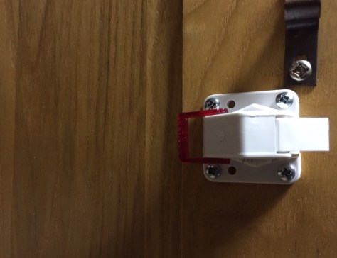 With that being said, installation is a little tricky. The latch requires a hole to be drilled in the back of the door that comes within 1/8″ of the front. I am using a metal over-the-bit depth gauge on my drill bit that is set to 5/8″ deep, so I have confidence I won’t pop through the front. The company that makes the Tot Lock has answered customer concerns about this by developing a new lock called the Safety 1st Magnetic Locking System that doesn’t require a deep hole to be drilled in the door…only the smaller pilot holes for the mounting screws. Reviews seem to be as good as they were for the Tot Lock, without the installation complaints. Though both were designed to keep children out of the cabinets in a home, they work great in keeping the contents of the cabinets from flying out while going down the road in an RV. We haven’t road tested them yet, but I’m not able to open the door by pulling hard on the knob. I’m sure they will work well for us.