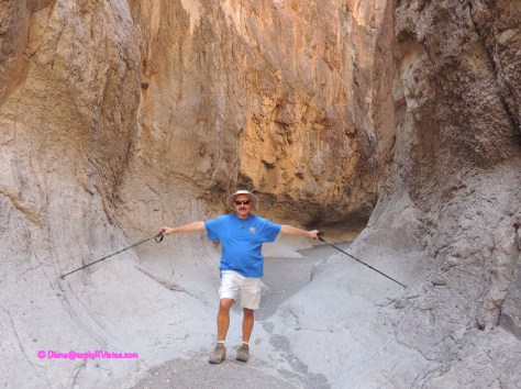 On April 7 and 8, we drove west from our campsite to Big Bend Ranch State Park.  Totally seperate from the national park, Big Bend Ranch State Park is also a series of open range cattle ranches.  It encompasses 311,000 acres and 23 miles of Rio Grande river frontage.  The first day was a driving tour as far as the town of Presidio, as our feet were still very tender from the 12 mile South Rim hike the day before.  On that trip, we spotted Closed Canyon, and Diana encouraged me to lace up the hikers and check it out the next day.