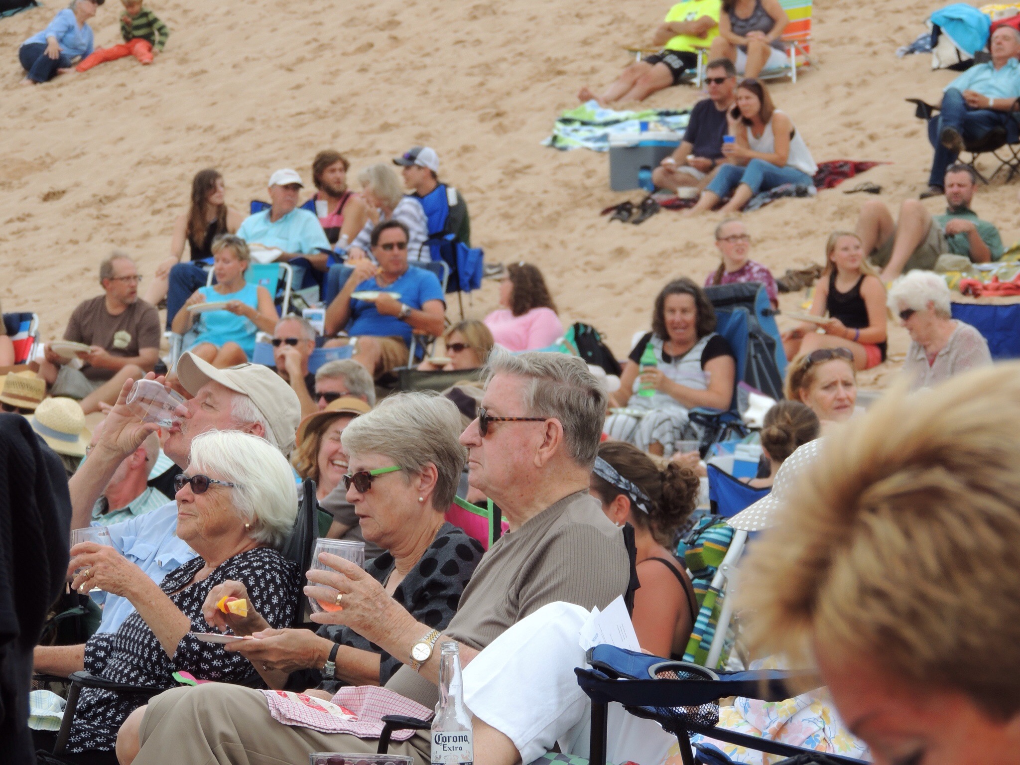 Once every summer for the past 18 years, the National Park Service and the Glen Arbor Art Association turn the sand hill and park below it into a concert venue, as part of the association’s Manitou Music Festival.  This year’s free concert featured an eclectic folk-Americana group out of Chicago, of all places, called the Way Down Wanderers.  While they were true to traditional bluegrass with their choice of instruments, their style was much more diverse…ranging from Merle Haggard to their own pop/folk-infused songs.  They had a lot of energy and put on a spirited show.  We were their with several friends, and with a delicious spread of food and drink, we settled in for an evening of entertainment, people watching and conversation.  I pulled out the Nikon and turned the lens loose on the crowd for a plethora of candid photos.  Enjoy!