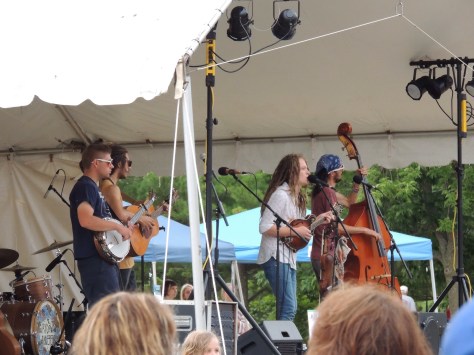 Partway through the show, Diana checked her Facebook account, as one of our college friends was in the area and she wanted to see if he was at the event.  He wasn’t, but she did notice that our friend Camilla had posted that she was there.  She had ridden her bike from D.H. Day campground, where she was spending the weekend.