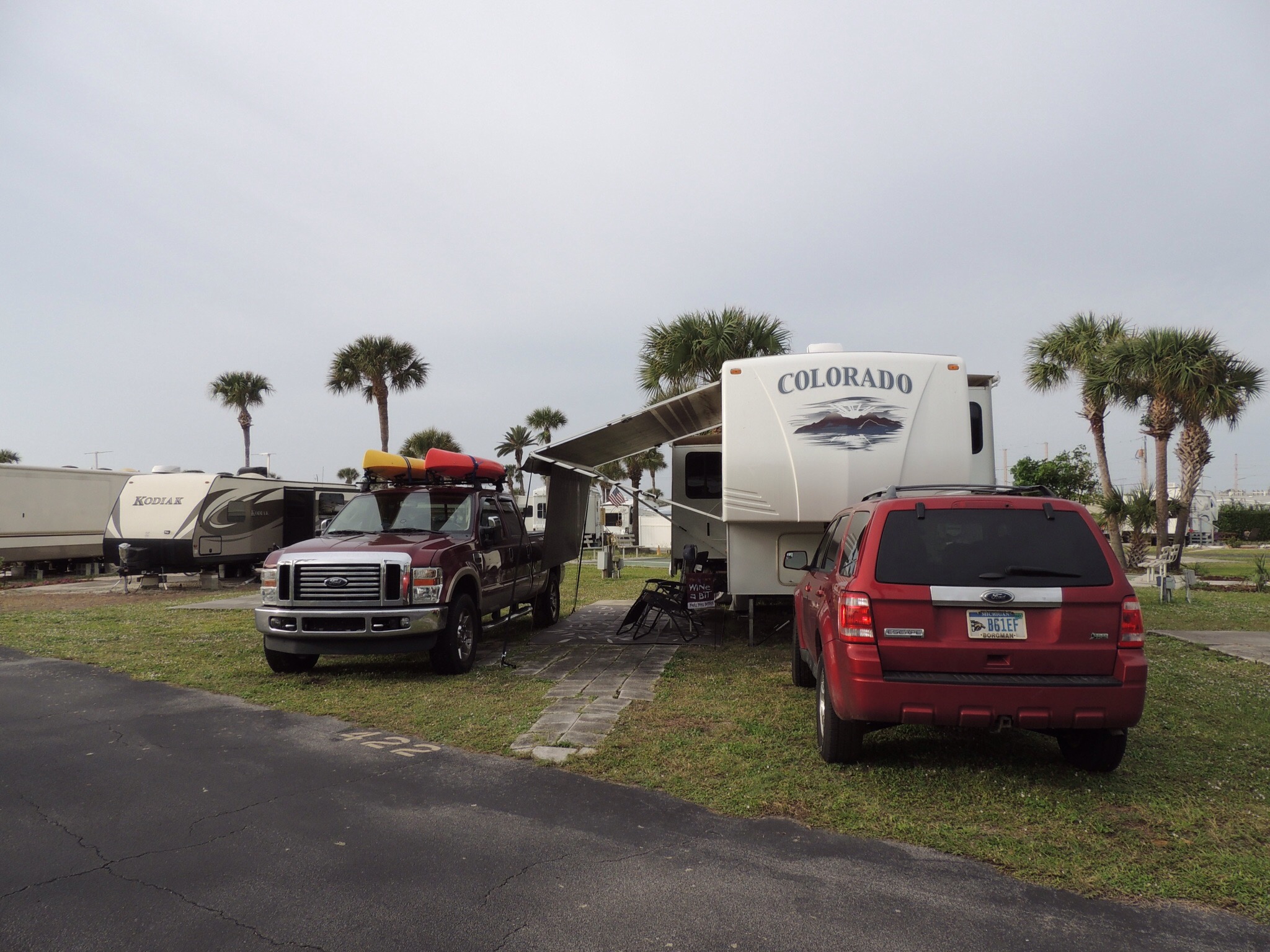 The only reservations the park takes is for returning customers, for the site they were previously on. The only way to get a bigger site is to request one, in hopes that someone leaves…which rarely happens. Well, we lucked out. One of the best sites in the park opened up, and the park called us and asked if we wanted it. We immediately said YES! By all rights at that point it was ours, and we could have taken our time to get there…but we wanted to get the rig on the site as soon as possible. Having a prime site sitting empty made us a tad nervous….so we hit the road for Melbourne Beach!