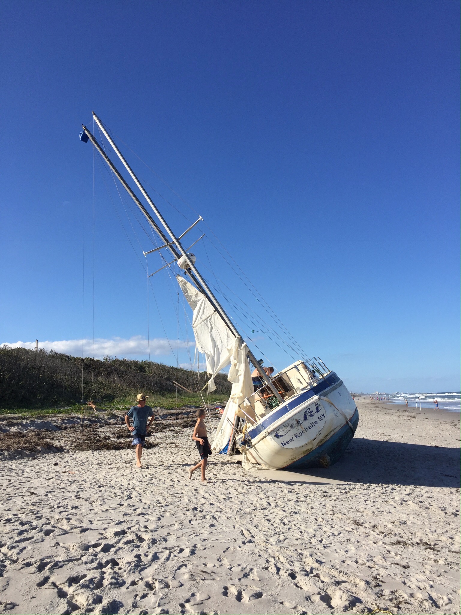 We also have a visitor from Key West. This sailboat was ripped from its mooring in the Keys, brought around the east side of the state by the wind and currents, and deposited on the beach in front of the condos just north of our park. Unfortunately, the owner is currently in prison for some really nasty stuff, so there is a bit of red tape involved in getting it moved. It definitely makes an interesting conversation piece!