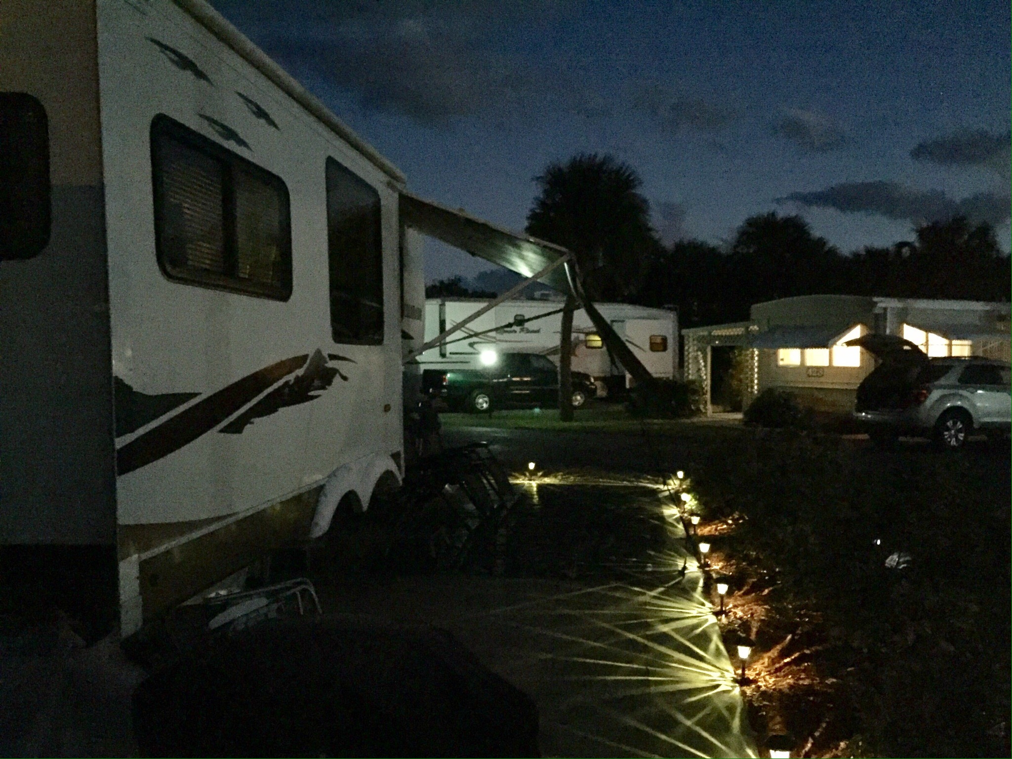 In our last post, we mentioned that we had received a call that had us make a quick exit from Georgia. Wow…we hope we didn’t build that news up too much! The call was from the park we stayed at the last two winters, telling us that a site we were in hopes of getting had opened up. Several of our readers who visited know how cramped we were on our former site. We barely were able to get both of our vehicles in, and sitting on our patio meant we were in a tunnel between our truck and our fifth wheel. The truck is seven feet longer than the Escape, so we weren’t able to switch them. Needless to say, we didn’t meet a lot of folks out walking, as they didn’t see us sitting there!