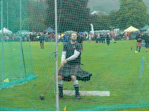 After leaving the castle we headed to the Pitlochry Highland Games. This has been an annual event since 1852. It was great fun! Many events were taking place at the same time; including races, bag pipes, Scottish dancers, and other traditional Highland games. There were all levels of participants, from local school children to professionals. They even had a tent for international visitors were they treated us to a plate of goodies and a glass of wine. I enjoyed wearing my new hat and scarf, made with MacGregor tartan. Below a contestant is competing in the hammer throw.