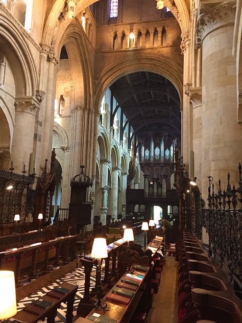 Check out that courtyard! This was actually supposed to be a cloister…or covered walkway…when it was started by Thomas Wolsey in 1525. You can see the beginnings of the arches on the walls and the pedestal bases that were meant to support the columns. At the opposite side of the courtyard sits Tom Tower, which houses the largest bell in Oxford…Great Tom. Weighing in at an impressive 12,500 pounds, it is also the loudest bell in town. The college rings it 101 times at 9:05 PM every single night…a 20 minute process… so no sense in hitting the pillow early. The 101 is for the original 100 students plus an extra one that was added for a bequest made in 1663. The five minutes past the hour signifies the fact that high noon occurs five minutes later than it does in Greenwich…the measuring point for time on Earth. Whew…I knew I would get a higher education by coming here!