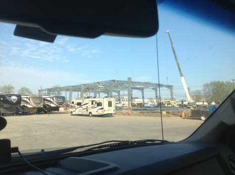 Oops. One of our sets of shackles had broken and the leaf spring was resting on the underside of the frame. I called a local RV mobile tech who came out and installed new shackles on that one spring. From there, we headed straight to Elkhart.