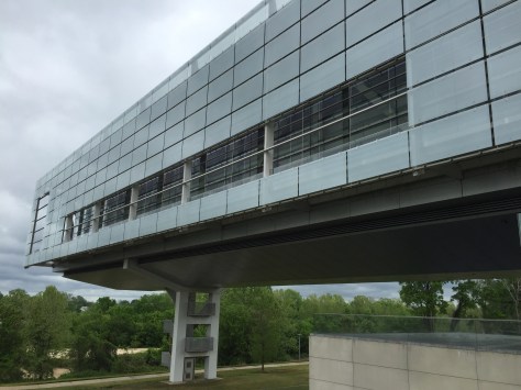 The building itself was interesting in the fact that the upper floors were supported by this one set of columns on one end. There’s the fire exit intertwined in it, unless you want to do a high dive into the Arkansas River. 🙂