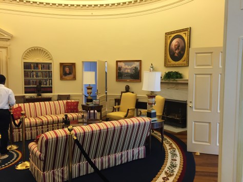 The Oval Office is an exact replica of how it was during Clinton’s term in office.