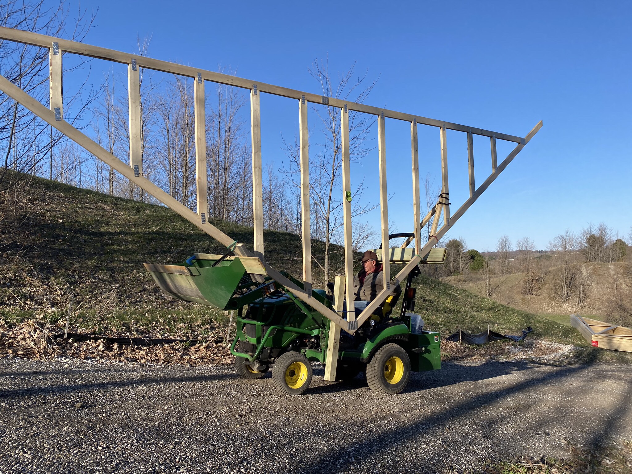 We purchased a back blade from a 1953 Ford Jubilee tractor. A little John Deere green and we are ready to go! That and the front bucket on the tractor should take care of any snow we have.