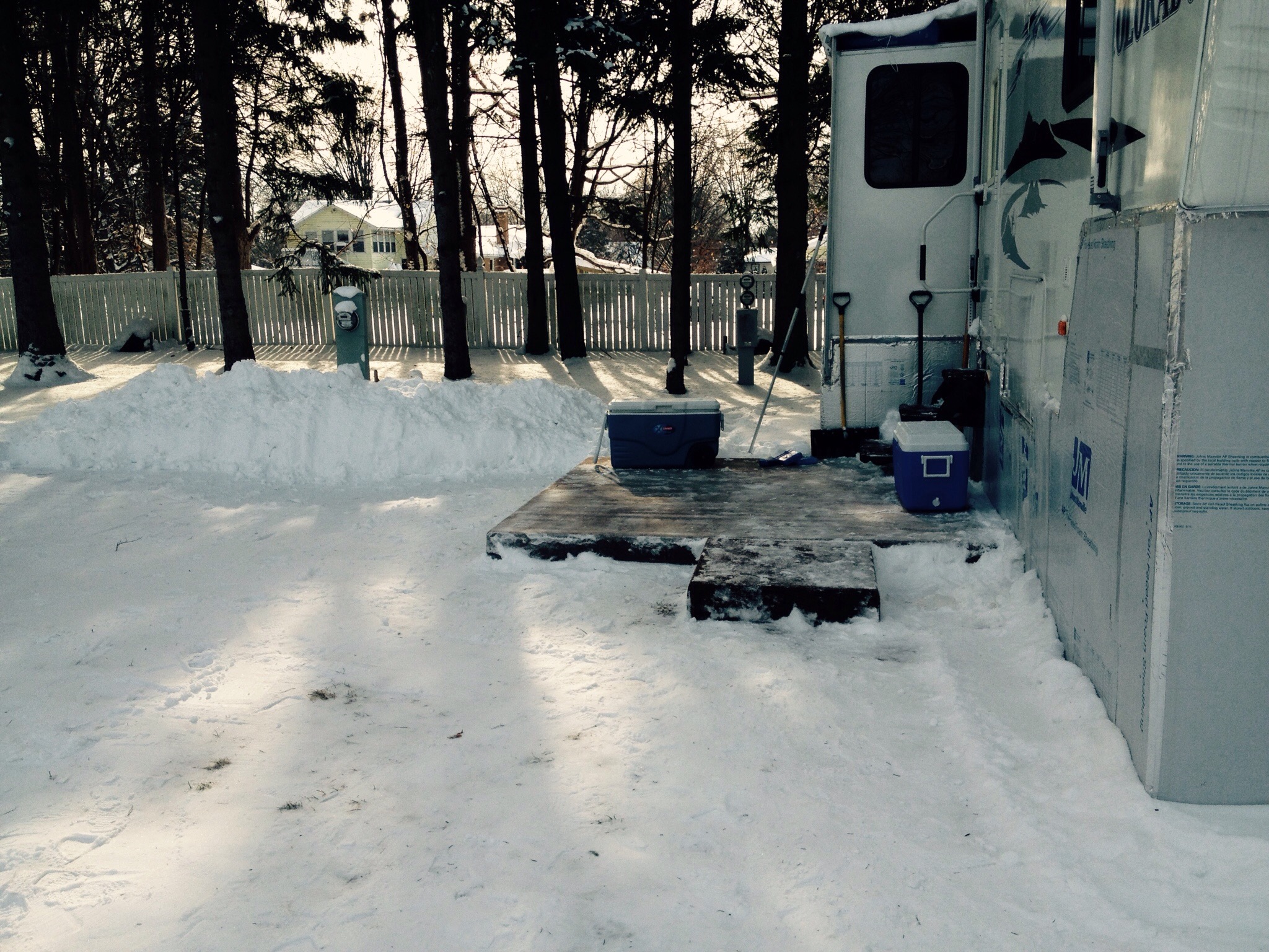 I had also debated whether or not to remove the aluminum channel from the base at this time, but decided to wait until I was ready to reassemble the new base, so as to not damage the corners on the channel. There isn’t a lot of room to set things in an RV in the winter.
