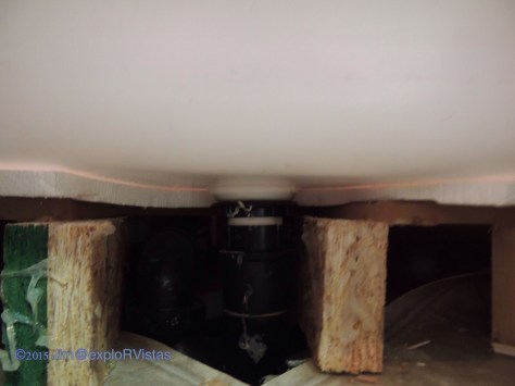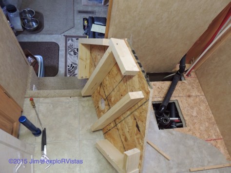 Last week, we noticed that our shower floor was cracked. Back when we first bought the trailer (used), we noticed the shower floor was ‘soft’. I had made an attempt to beef it up as best I could through the access panel in the front, but it was really a temporary fix at best.