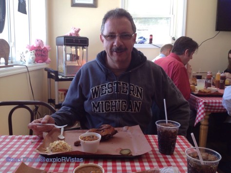 Duo-Form was easy to find, and the people there were very nice. We were in and out in a flash. Seeing it was around noon, we decided to find a place for lunch. My gluten allergy always makes it a challenge to find places to eat, and we usually check out the app ‘Find Me Gluten Free’. We prefer local over chains. Bingo! There was a bar-b-que joint listed about 8 miles from us.