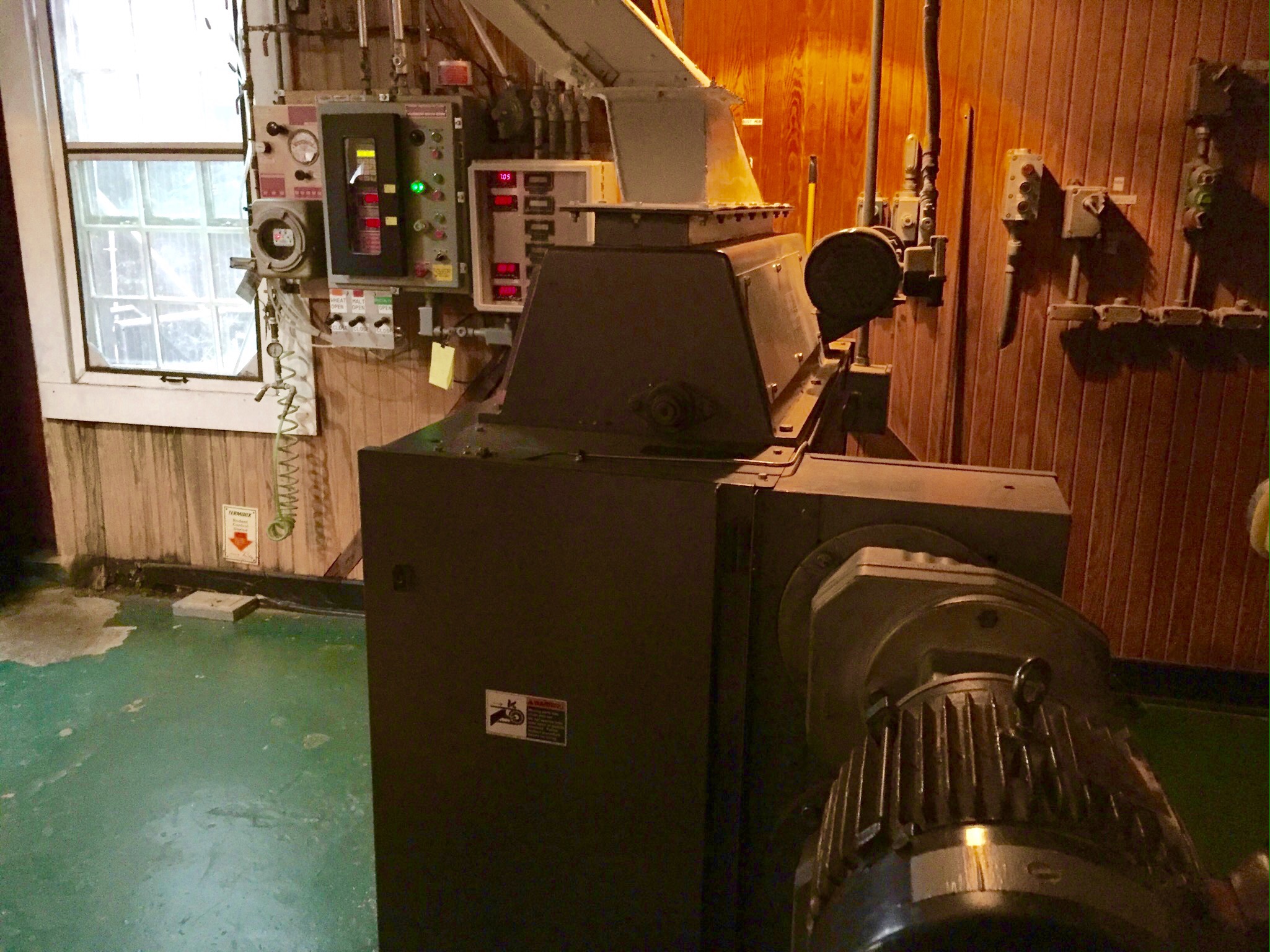 Stepping inside the distillery building, one of the first things you see is the roller mill ….