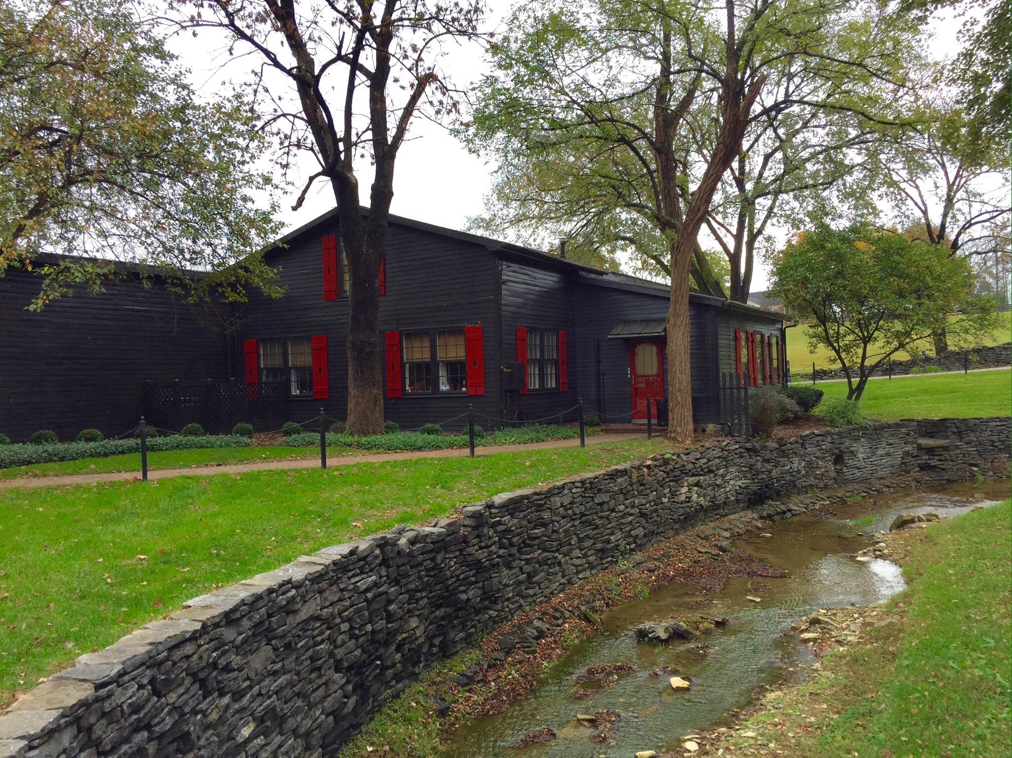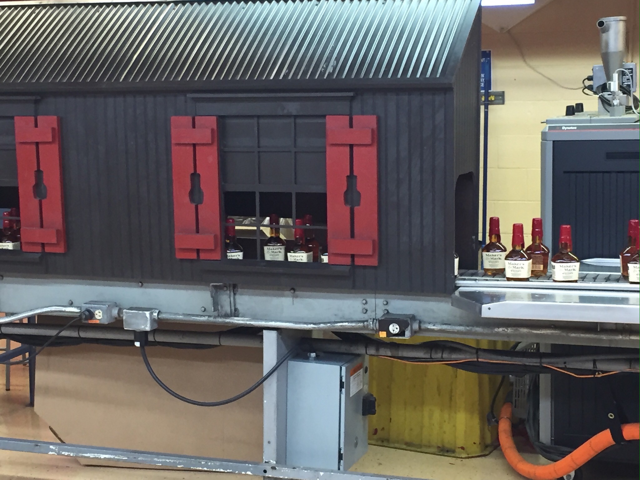 All of the buildings on the property are painted chocolate brown, and the windows are outlined with red shutters….the same color as the sealing wax…with cutouts of the Maker’s Mark bottles in them.