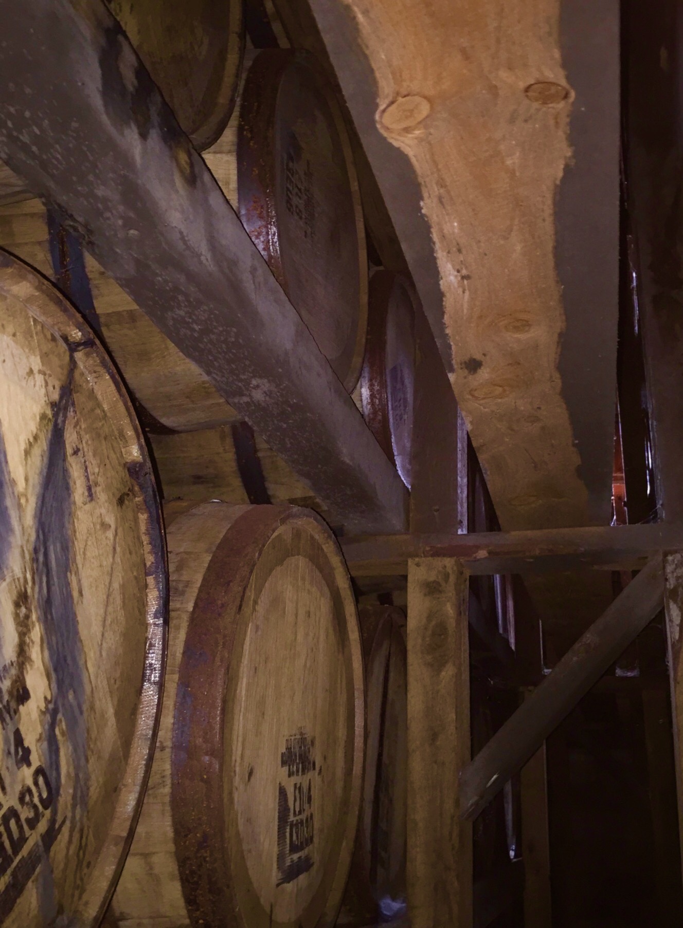 There was a campus of at least 20 giant, chocolate brown rackhouses in front of us, with more under construction! I guess if a company ages their product for an average of 6 years, they have to store a lot of barrels! Very impressive.