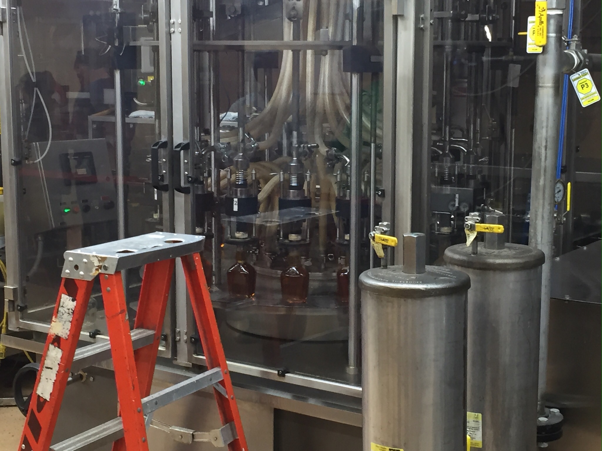The machine then flips the bottle over and rinses the bottle out with none other that Maker’s Mark.