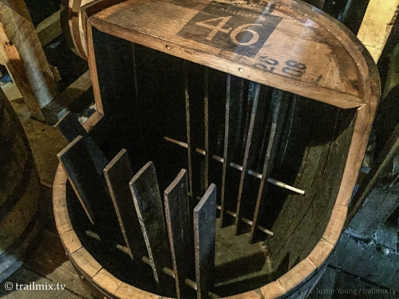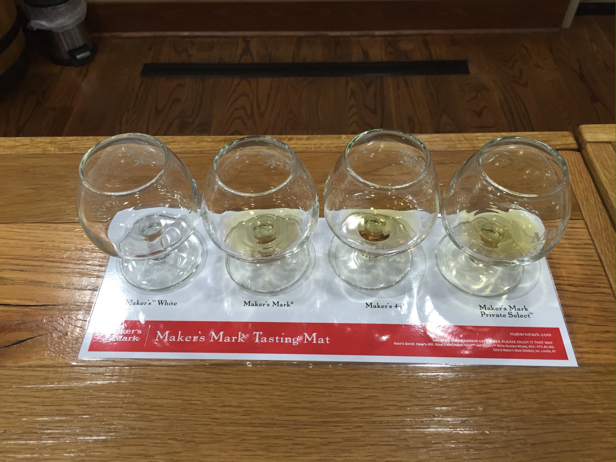 In specialty products, such as the higher end Maker’s 46, fully aged bourbon is poured into previously used Maker’s Mark barrels that have different seared French oak staves in them. The bourbon is then aged an additional nine weeks to bring out a different flavor. It’s even possible to order a special batch for yourself under their Private Select program, which uses a combination of 5 different types of staves they have available. Oh, my… 😀
