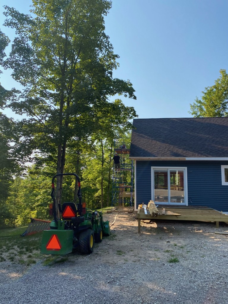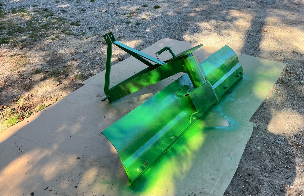 We did get a very snowy week in early December, which allowed me to get my tractor into snow removal mode! The combination of bucket on the front and blade on the back made quick work of the foot of the white stuff that fell. The bulk of our driveway is gravel, but the steep section by the road is asphalt. One portion of that is a 10% grade with a sweeping curve. When I was in high school, I plowed our church parking lot with the same set-up on a 1953 Ford tractor, but that lot was flat as a pancake. Our hill concerned me, so I took to the John Deere Facebook group I belong to for suggestions. There were two schools of thought to that hill. One said to use tire chains for traction. The others said that my turf tires were sufficient to run up and down it, warning that tire chains would damage the asphalt. Not wanting to mess up our pretty, new driveway surface, I chose the latter…even though I had already purchased the chains. It is here I should mention that I was running the back blade inverted…the concave portion facing rearward…so as to not scoop all the gravel off our drive. I continued that practice down the asphalt section, which left a hard-packed 1/2 inch of snow on it. That part of the driveway takes three passes to clear, with the bulk of it being finished it two. After my second pass down, I lifted the blade, turned around and headed up the hill. About 50 feet from the top, all 4 wheels started spinning and the front of the tractor drifted sideways. Being sideways on a tractor on an icy 10% grade is not an ideal place to be, so I went into problem-solving mode and dropped the bucket and back blade down. That acted as a brake and it also lowered my center of gravity. I came to a stop perpendicular to the driveway, 200 feet from the road…still on that steep grade. I gingerly got off the tractor and informed Diana of my predicament, then set out to try and use my truck to pull the tractor back up. I ended up not having enough tow strap and chains to reach it, so I scrapped that idea. I then got back on the tractor, refastened my seatbelt and lifted the front bucket ever so slightly. I then tried to drive forward, which swung the front end around and pointed it downhill. With the back blade acting as a brake, I slid all the way to the road. I then slogged through the deep snow on the side and joined the former school of thought and got the chains. Once installed, that did the trick. I backed up the drive without issue.