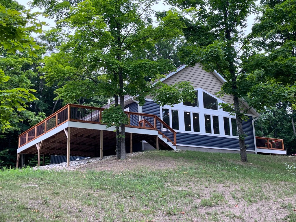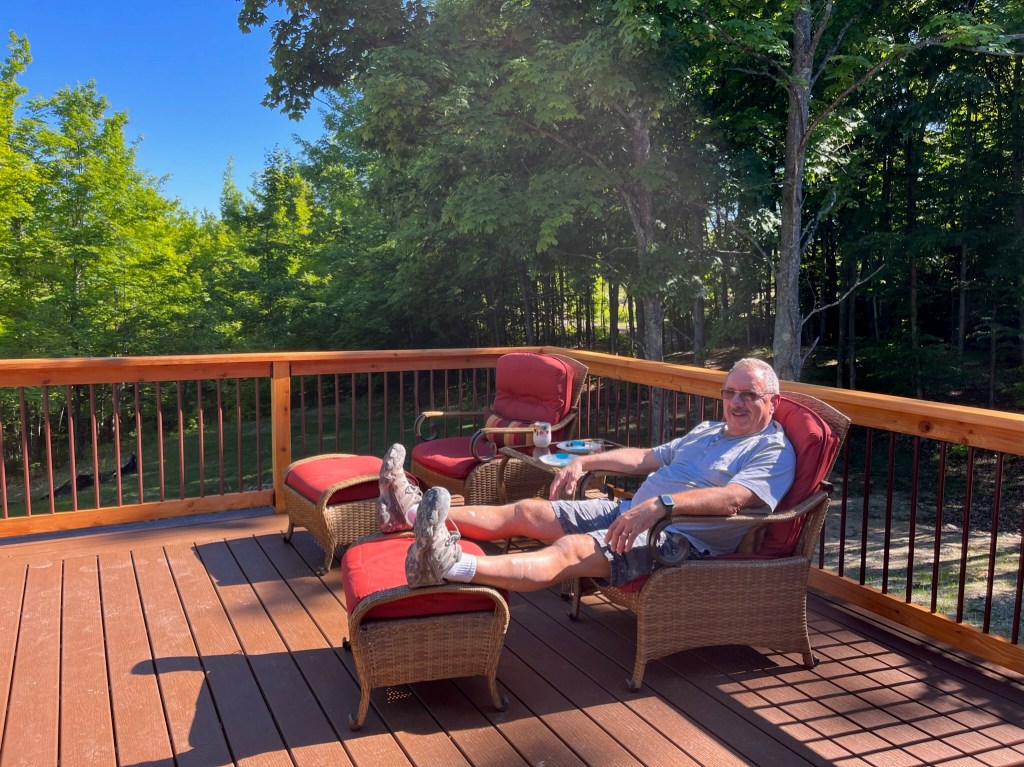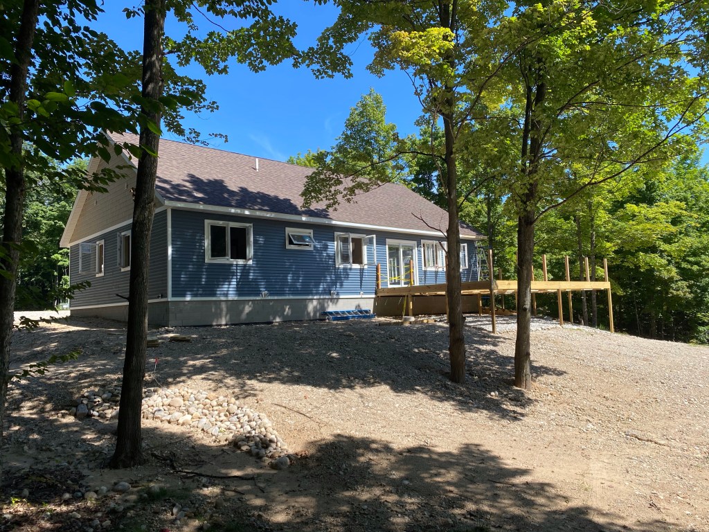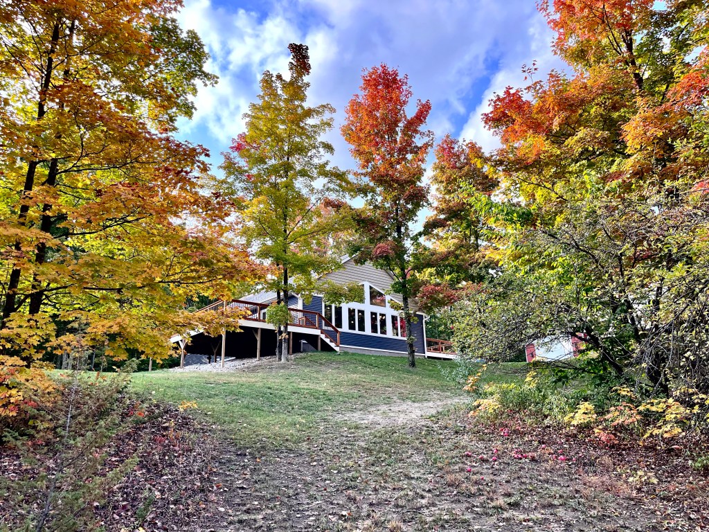 Beyond all of that, I am sure there are those of you who are shivering at the thought of us up here in northern Michigan. We had those concerns too, but we knew we had spent our first 55 years in snowy environs and were well equipped to handle it. What are our thoughts to this point? Mind you, it is still only mid-December, but we have to say we are pleasantly surprised! You may recall that we named our homestead “MapleVistas” as both a continuation of our full time RV moniker and the fact that our property is loaded with maple trees…and we have this ‘vista’ of the valley below us: