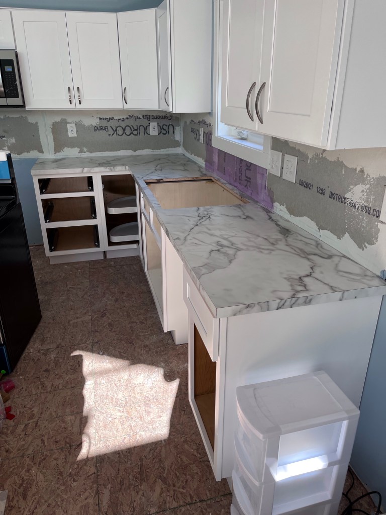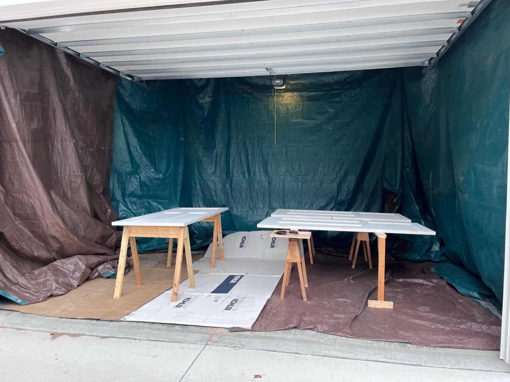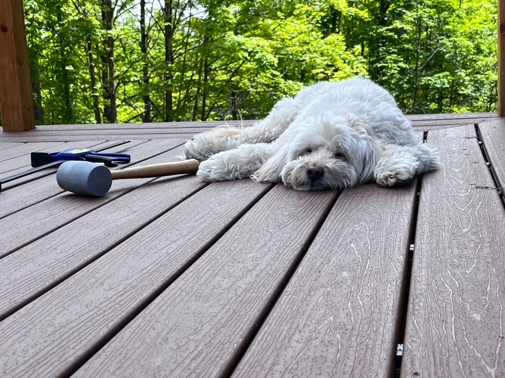 I’m now turning the rear blade with the concave portion facing forward on the asphalt section, which scrapes down to bare pavement. I then sprinkle a light coating of ice melt on it for insurance. That seems to have taken care of the problem. Now…where do we want to put that tiki bar…