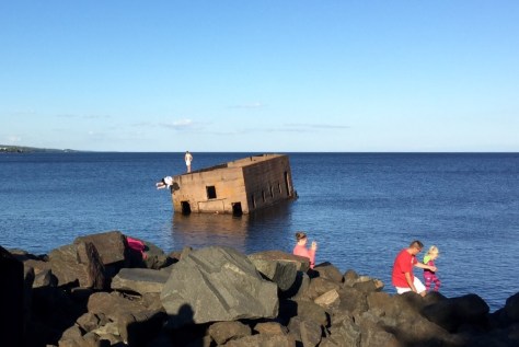 There were several young guys taking turns jumping off of this old structure into Lake Superior.  When someone asked one of them if the water was cold, he responded “It’s warmer than it was in May.”  That’s one way of looking at it.  😊
