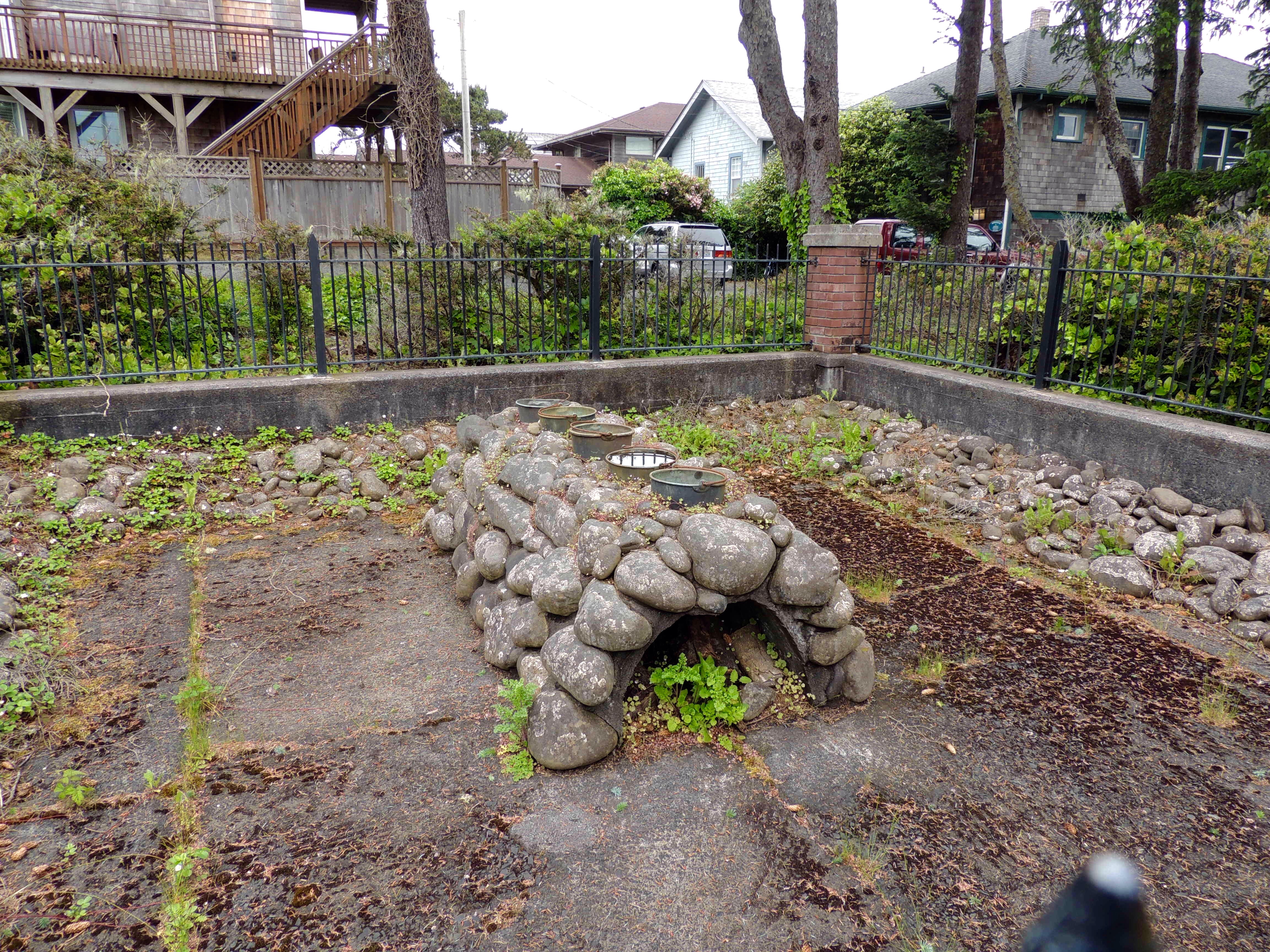 The iron window frames are either rusting or are missing. Not sure exactly why that is being allowed to happen, especially after putting so much effort into moving it. Hmmmm….