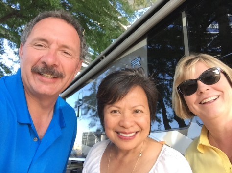 We were concerned that we were going to arrive in Tucson too late for any hiking or meetups, as it was getting too hot, the snakes were out, and all of our blogging buddies had headed north. After we set up at Mission View RV Resort, I decided to see what was happening online. I noticed that Steve and Mona Liza from Lowe’s RV Adventures had posted that they were still in town, even though they were supposed to have moved on. Although we had followed their blog for years, we had yet to meet them. Well it turns out that Steve found out he had cancer that required surgery. We contacted Mona Liza and said we would like to meet them, if they were up to it. I explained that I was a 7 year cancer survivor, and was doing well. She replied that Steve was in the hospital recovering from his surgery, but she would love to meet us. We set up a time to meet for dinner the next night.