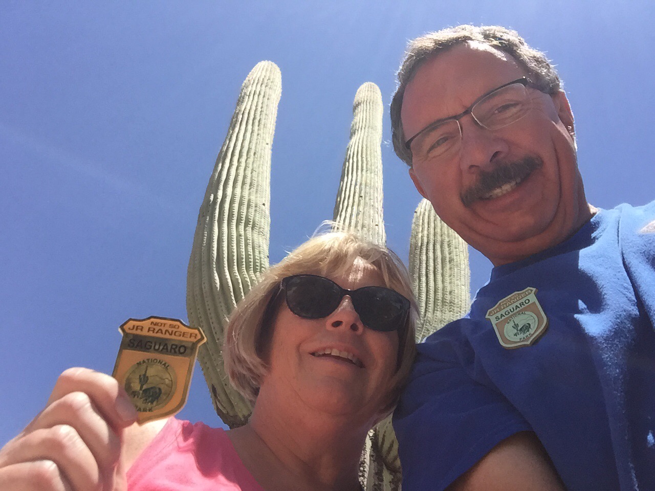 After we finished at the museum, we went to Saguaro National Park West. We picked up our Not-So-Junior Ranger book so we could learn more about the park. Seeing that this park has an east and west unit, we saved the bulk of the exploration for our trip to the east unit the next day. We headed back to Tucson and met up with Mona Liza.
