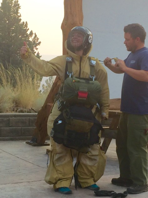 She even had the Redmond Smoke Jumpers visit a couple of times. Here she is in her gear, ready to jump! Take note of the fact that it was over 100 degrees when this photo was taken!