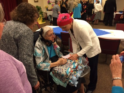 A sister (by birth) of one of her novices had recently been fighting cancer and made several of these fleece blankets while undergoing chemo treatments. She explained that it was her way of focusing on giving to others, rather than dwelling on her own health issues. She gave one to my aunt…