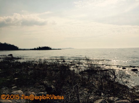The park has a small beach, and is located next to the state boat launch. Fife Lake is best described as one mile in diameter, and is fairly close to symmetrical. There are two small islands in the southwestern portion of the lake. This photo looks towards those islands, and the cottage Diana’s parents owned is just to the left of the islands and just to the right of the tree in the foreground.