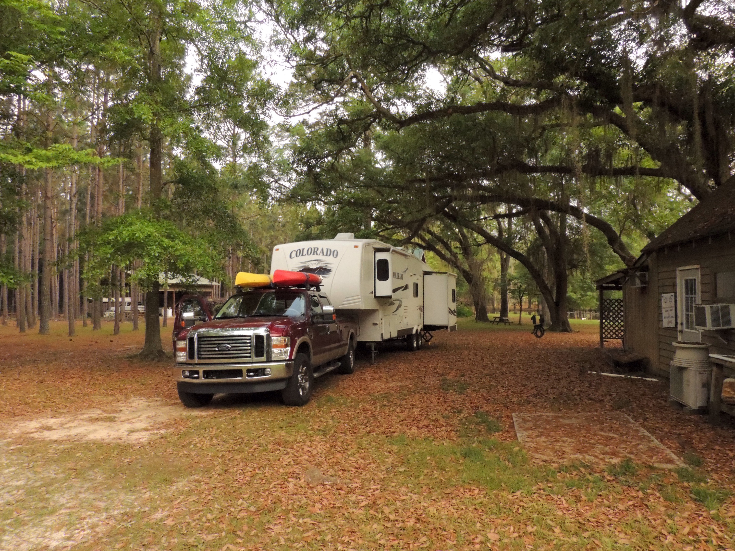 Further up the road, we made a familiar stop in Troy, Alabama at Deer Run RV Park. Troy has always been somewhat of a resupply depot for us, as they have both a Walmart and Publix, along with a Lowe’s store. We did walk Troy University’s campus one time and perused their bookstore, but we’ve never found much more than that in this now familiar place. That’s not to say we won’t in the future, though. I did have a fun interaction at a propane refill station when an elderly gentleman pulled up to refill his tanks. Turns out he boils peanuts at local events, along with making rocking chairs with an odd curve in the upper part of the back. Two of them grace the porch of the dealer. With a sly grin, he said “I used my wife as a model for it.” Take from that what you will.