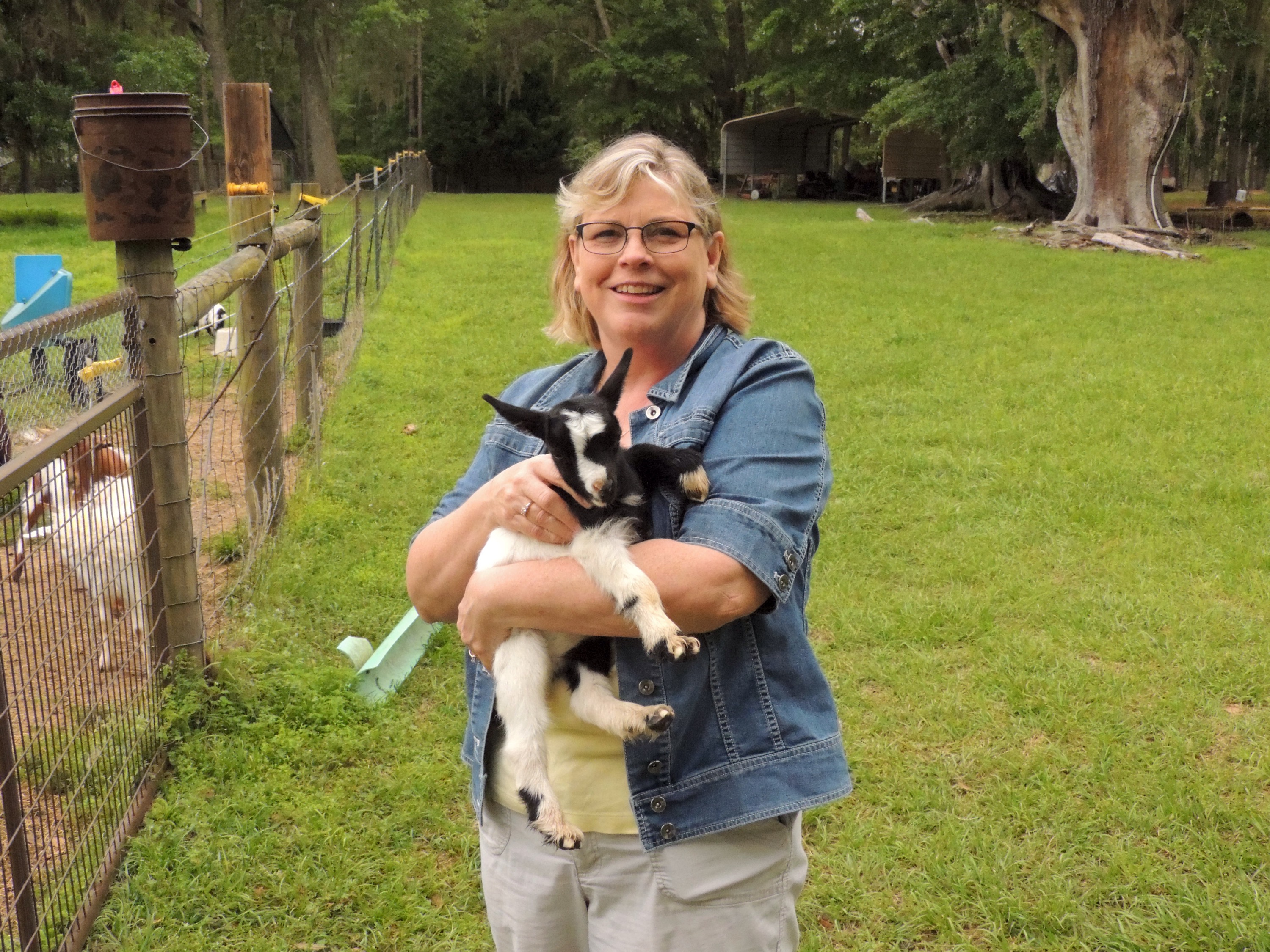 One of our first stops was a place we’ve stayed at often: Golden Acres Ranch in Monticello, Florida. This is a Harvest Hosts stop that we hadn’t been to in a few years. Bobbie and Fred Golden have a farm where they raise chickens, guinea fowl and Tennessee fainting goats. They also make mayhaw jelly, which has become a staple in our pantry. With our new rig having solar, we were excited to be off grid for the night to see how it performed.