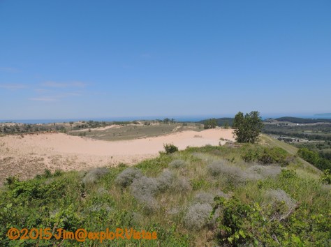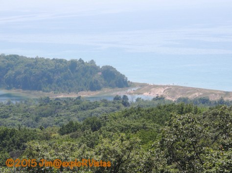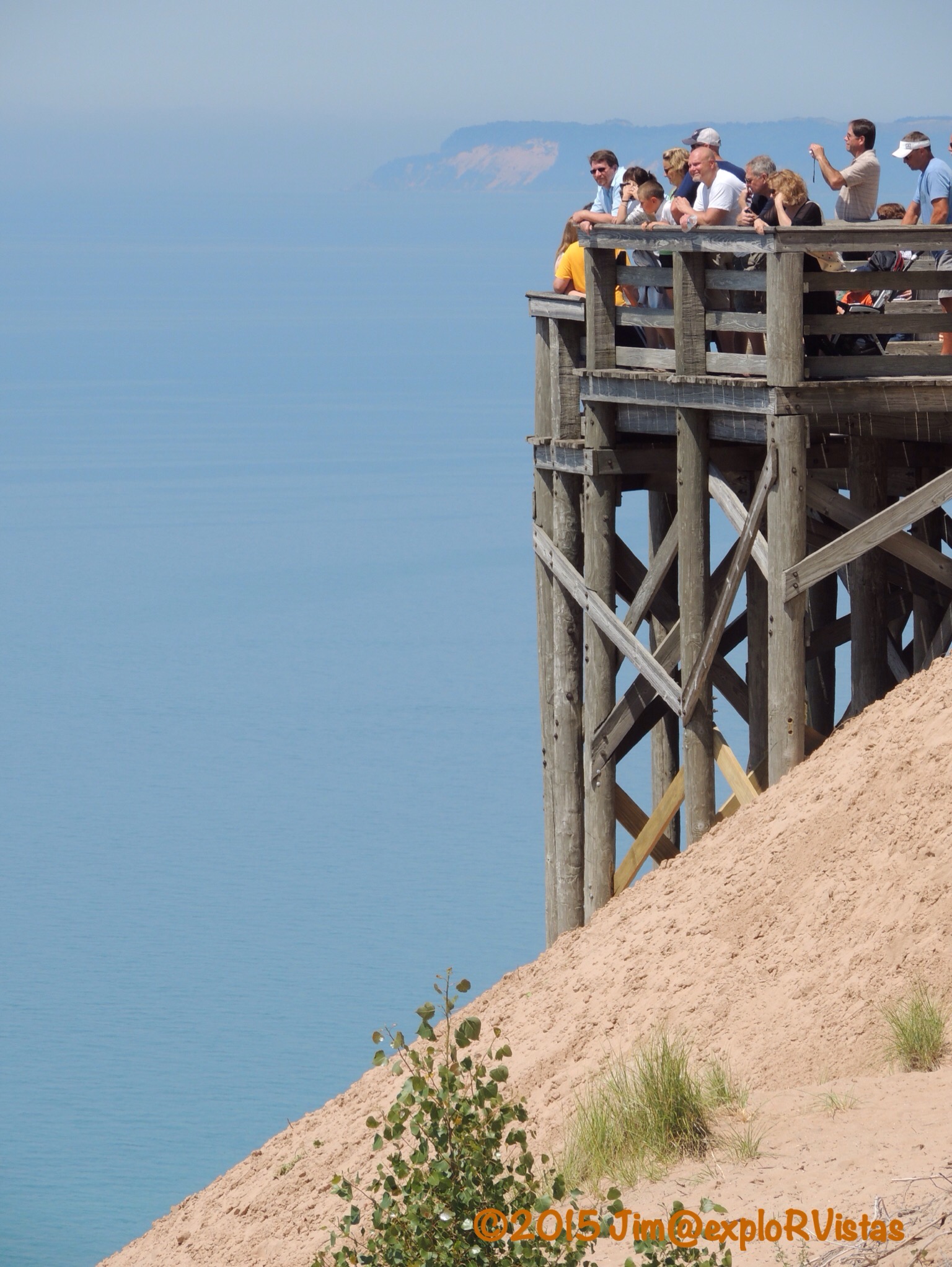There is an excellent viewing platform that extends out over the dune to take in the view. In the distance, South Manitou Island can be seen.