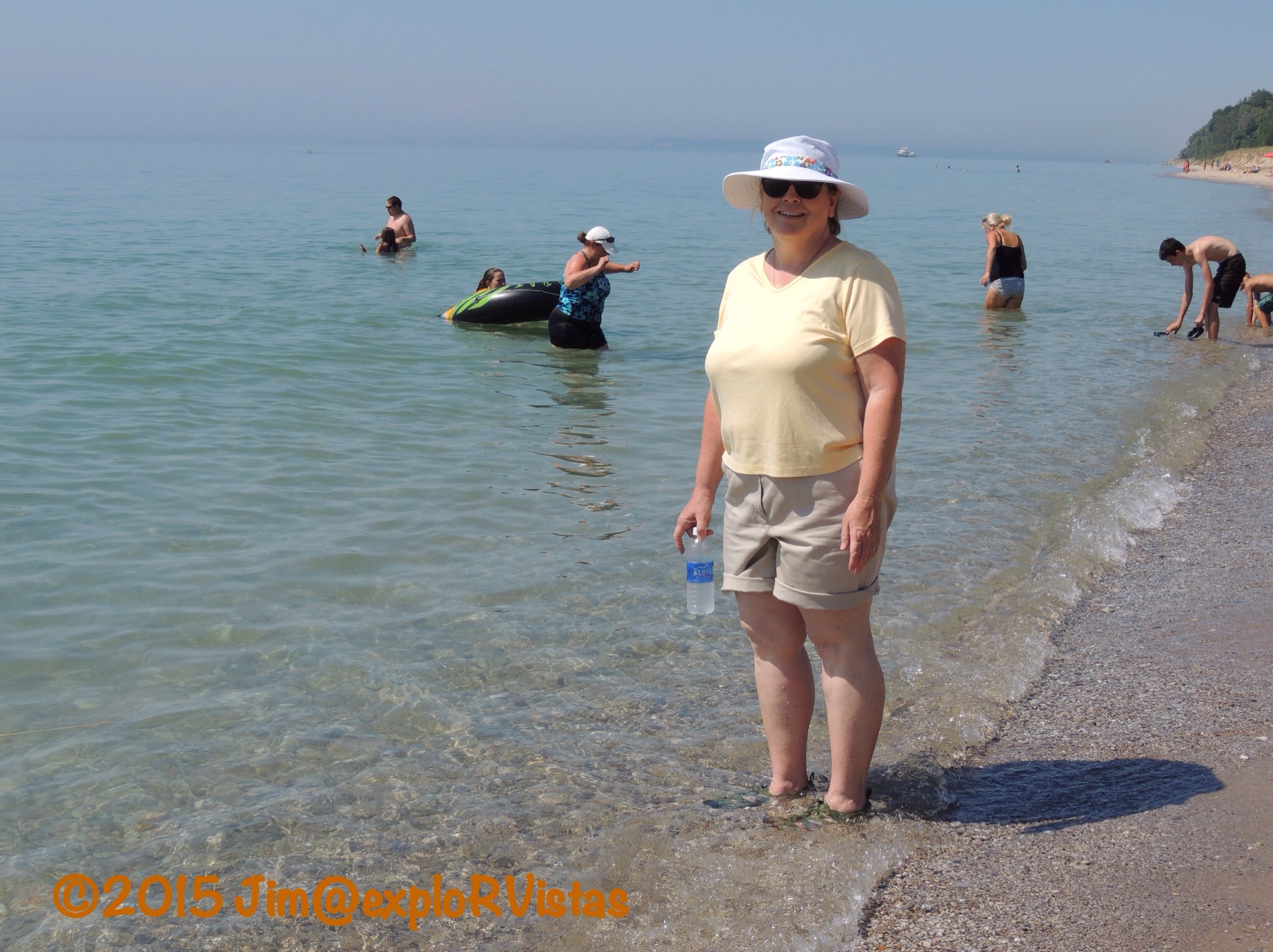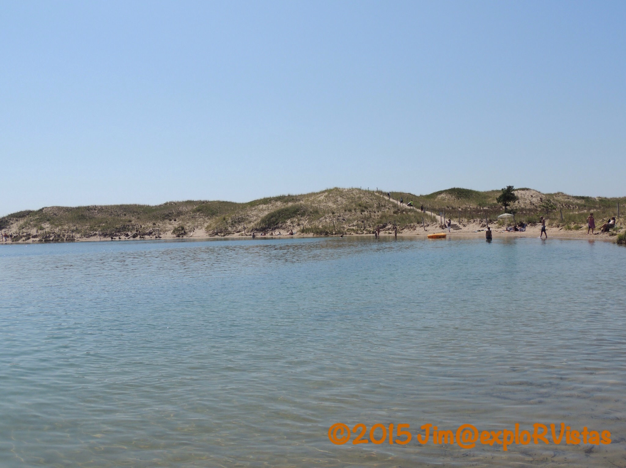 One of the last vistas on the drive is the North Bar Lake Overlook. The visitor’s guide explains that the shifting sands will eventually close off the channel between the lake and Lake Michigan. Noticing all the people down there, we decided to take a closer look.