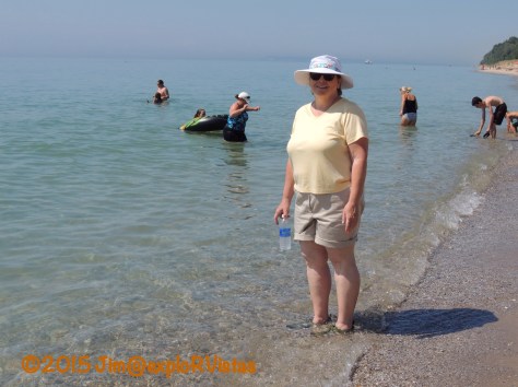 There were a few brave souls in Lake Michigan, including Diana…seen here sporting her cute, new hat!