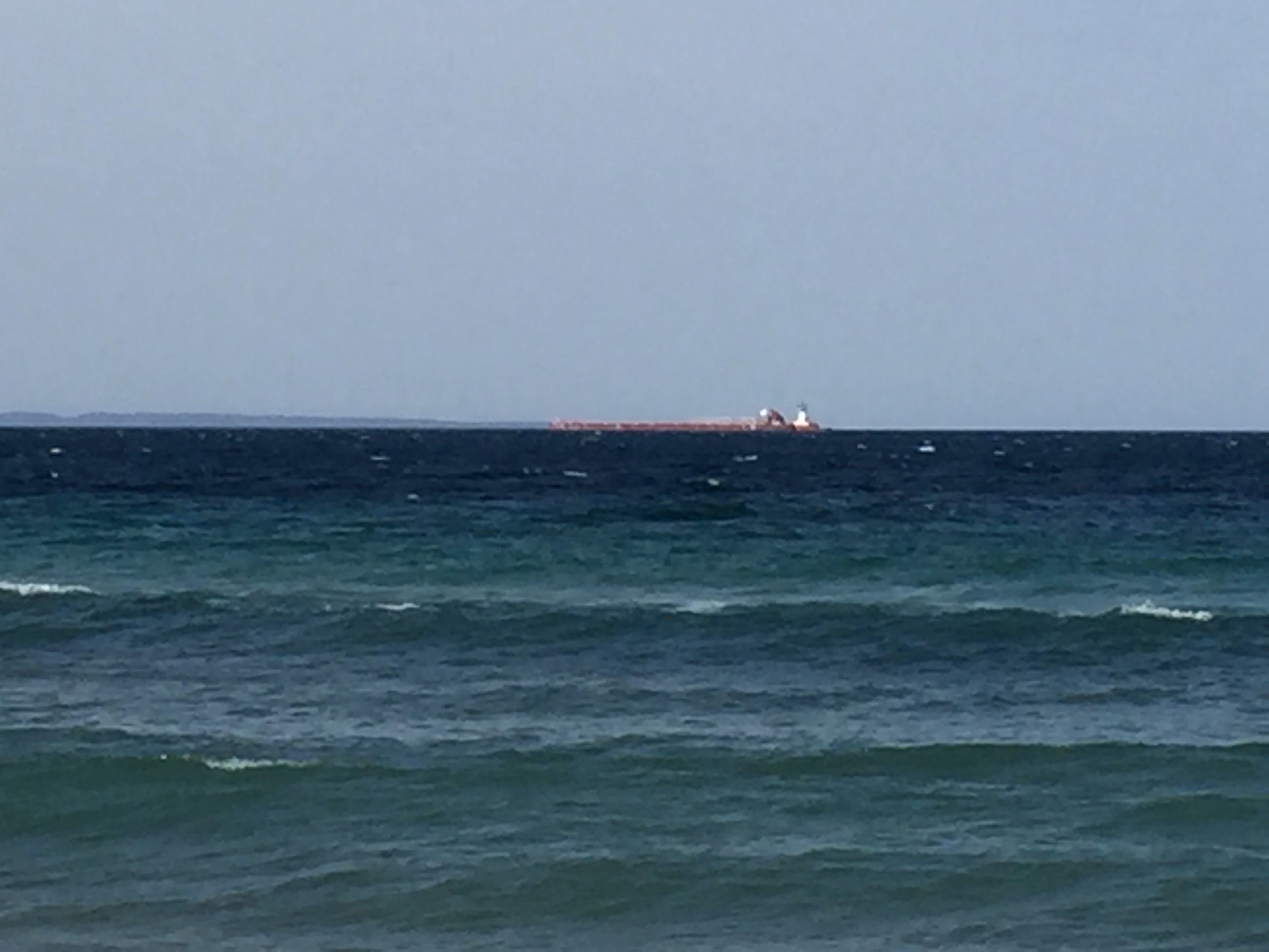 After we left the preserve, we decided to drive down to Good Harbor Beach to see if we could figure out if we were seeing a freighter or not.