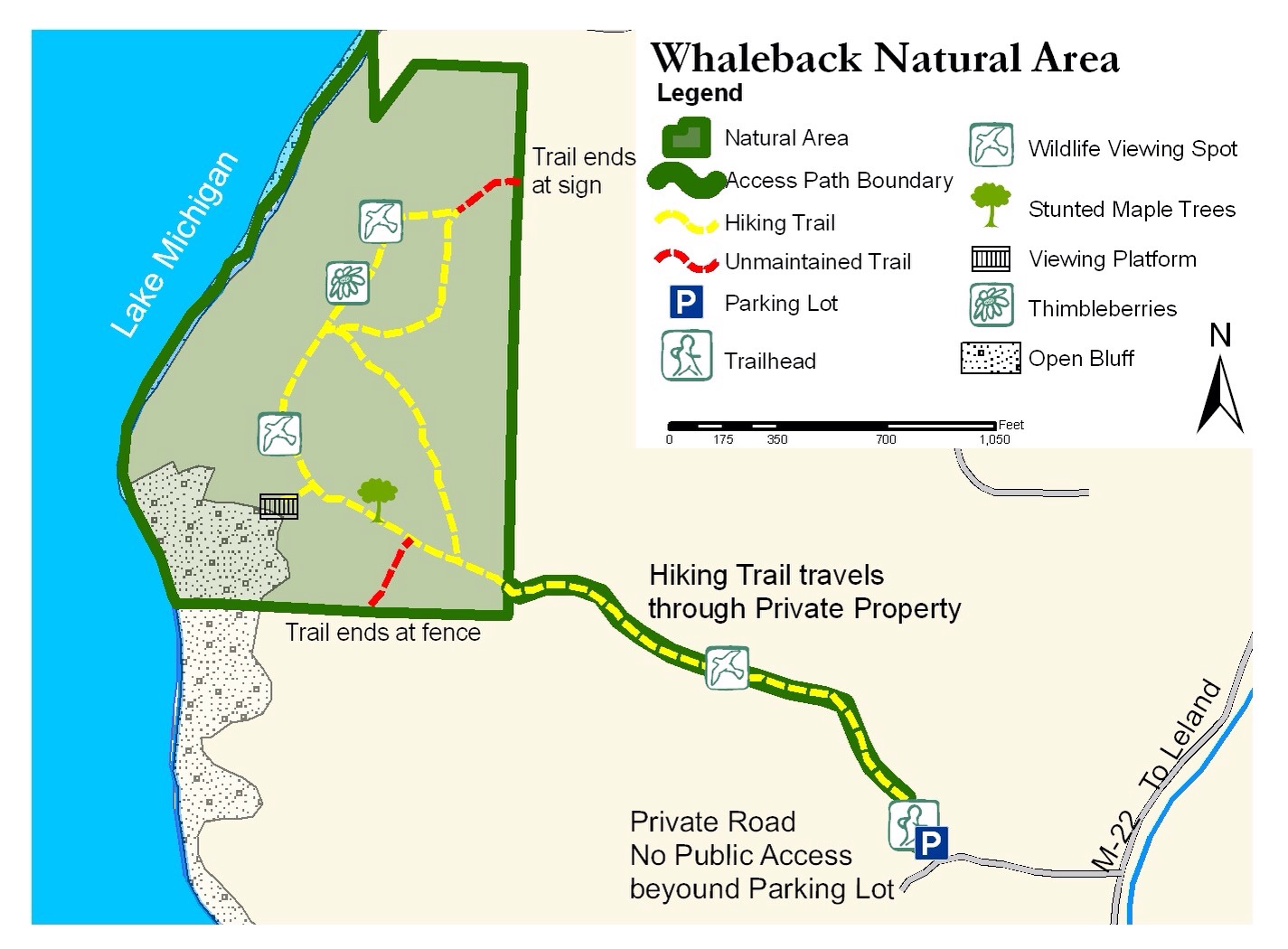 The starting point for the trail is just south of the village of Leland, just off of M22. There is a spur trail that snakes between two private parcels of land to reach the 40 acre glacial moraine.