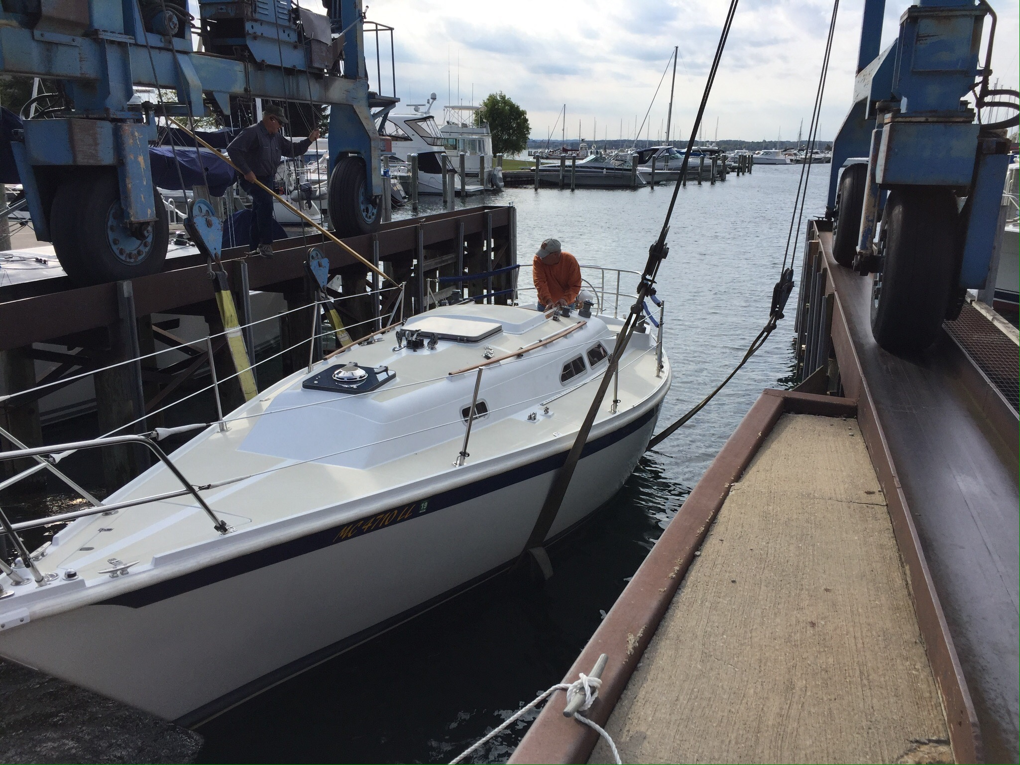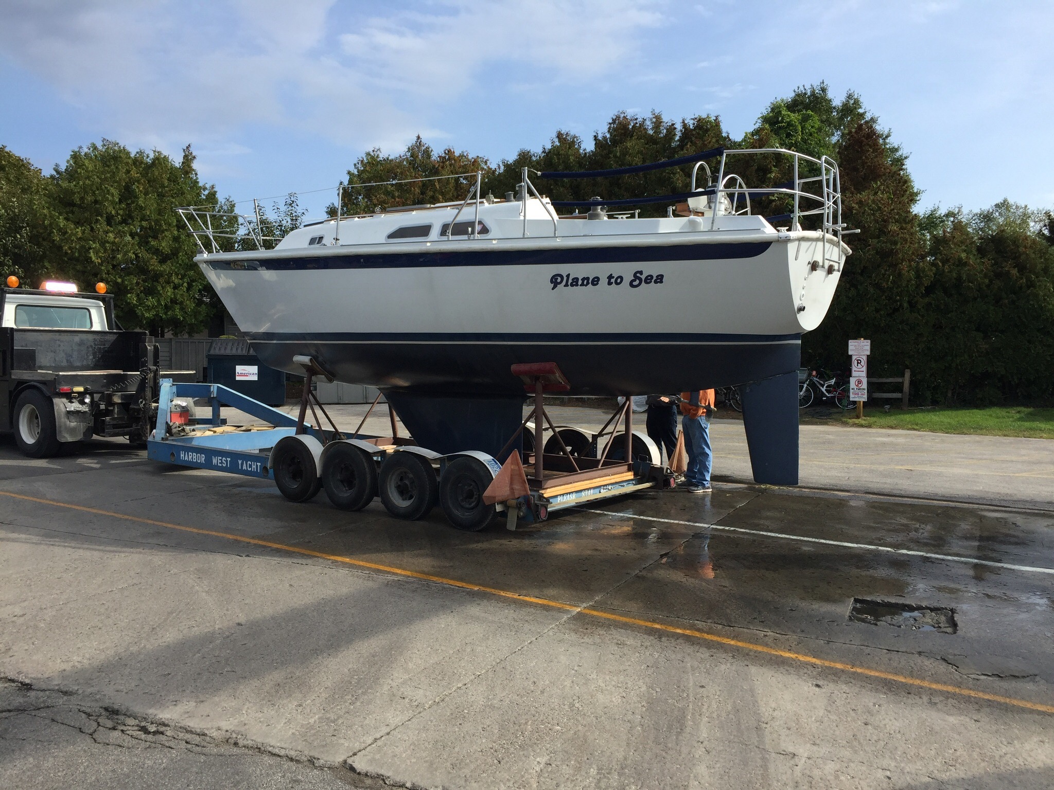 …and loaded on the cradle. Pretty cool name, seeing that Rod is a retired commercial airline pilot who took up sailing. 😎