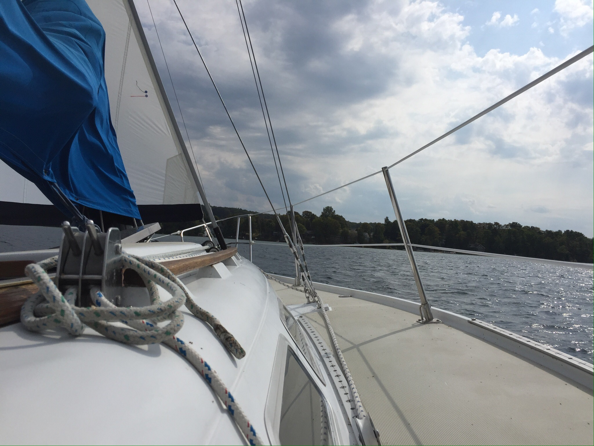 Rod also took us out sailing on Suttons Bay. The breeze was stiff enough to allow us to sail with only the jib.