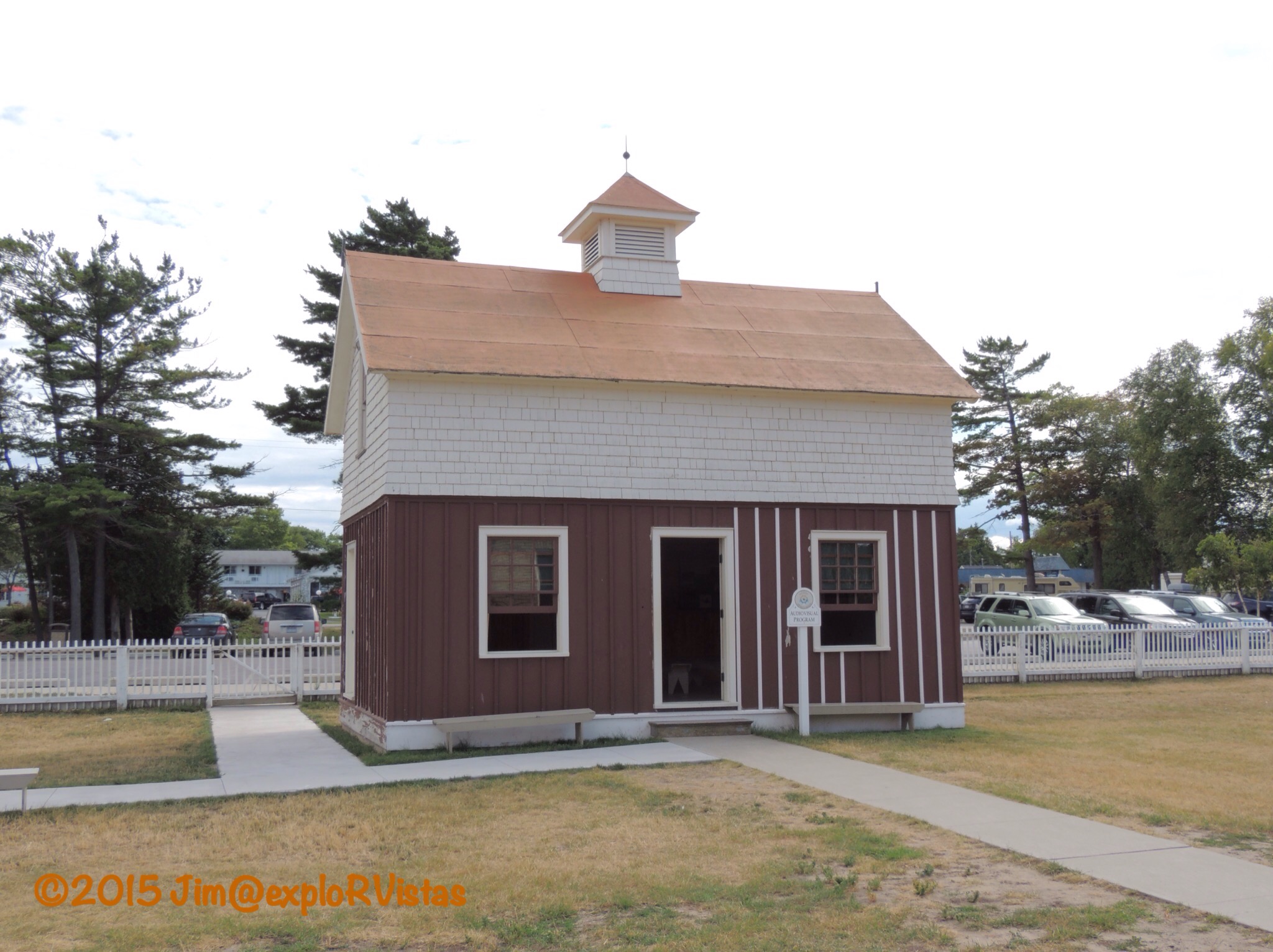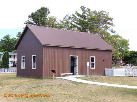 This is the barn John Peter Schmitt’s crew built. It is in need of a paint job, which appears to be in process. The building was moved to the west side of Mackinaw City, prior to the construction of I-75 and the Mackinac Bridge. It was being used as a storage garage by MSHP In that location. To bring it back, the trailer tires had to be deflated a little to fit the barn (minus the cupola) under the Mackinac Bridge approach. Even then, there was green bridge paint that ended up on the peak of the barn’s roof. 🙂 Once it was returned to the station grounds, the structure was restored to its original appearance. It now houses a theater that shows a video about the shipwrecks in the straits.