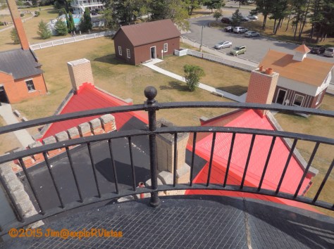 The view from the lantern room looking down at the roof of the lighthouse, and the other structures on the station property. The only buildings that are missing from the grounds are the cast iron oil house and the privy. I’m not sure if there are plans for replicas of those in the future, or not.
