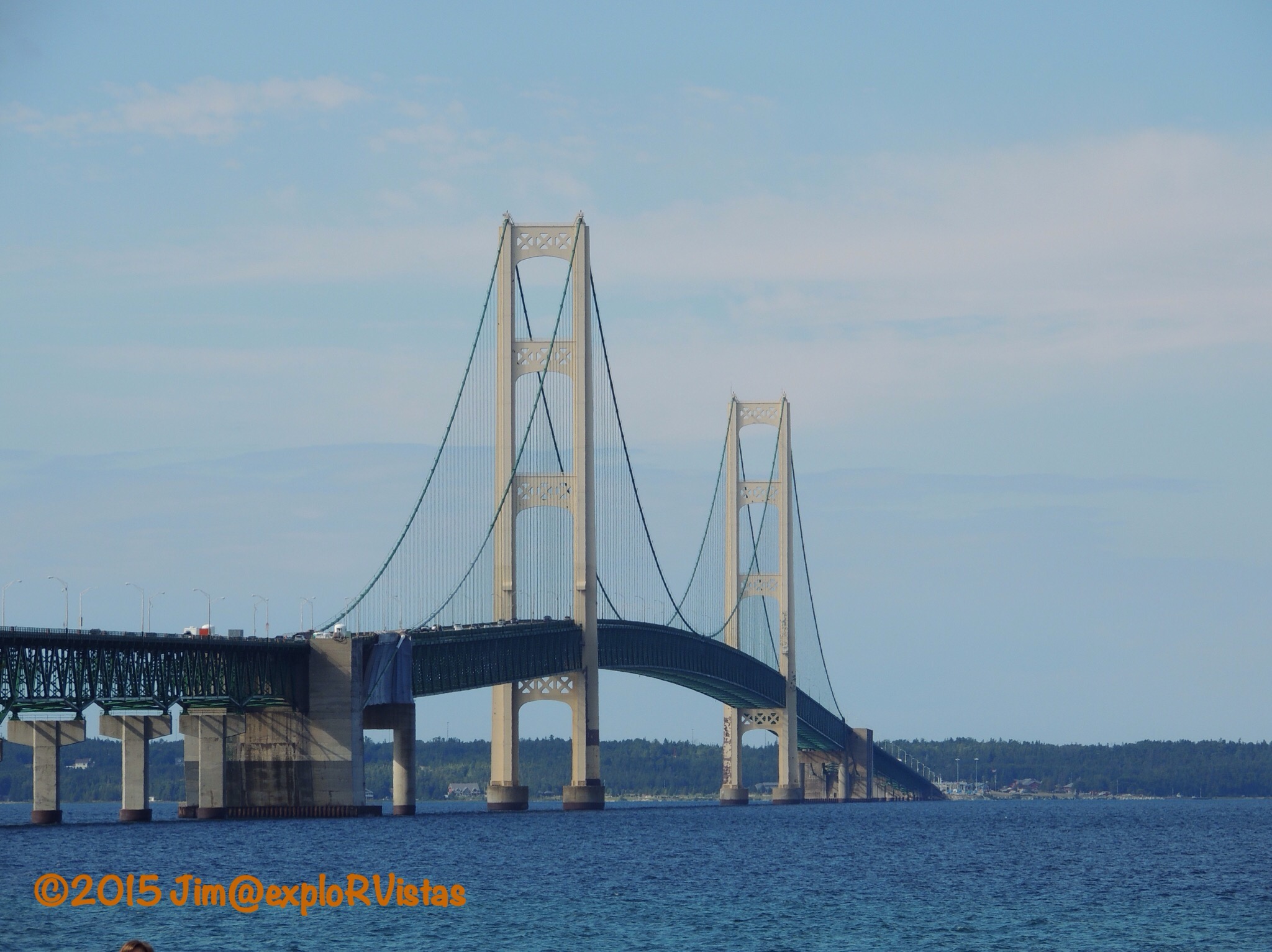 Looking north, the Mackinac Bridge stretches out for 5 miles to the Upper Peninsula of Michigan.