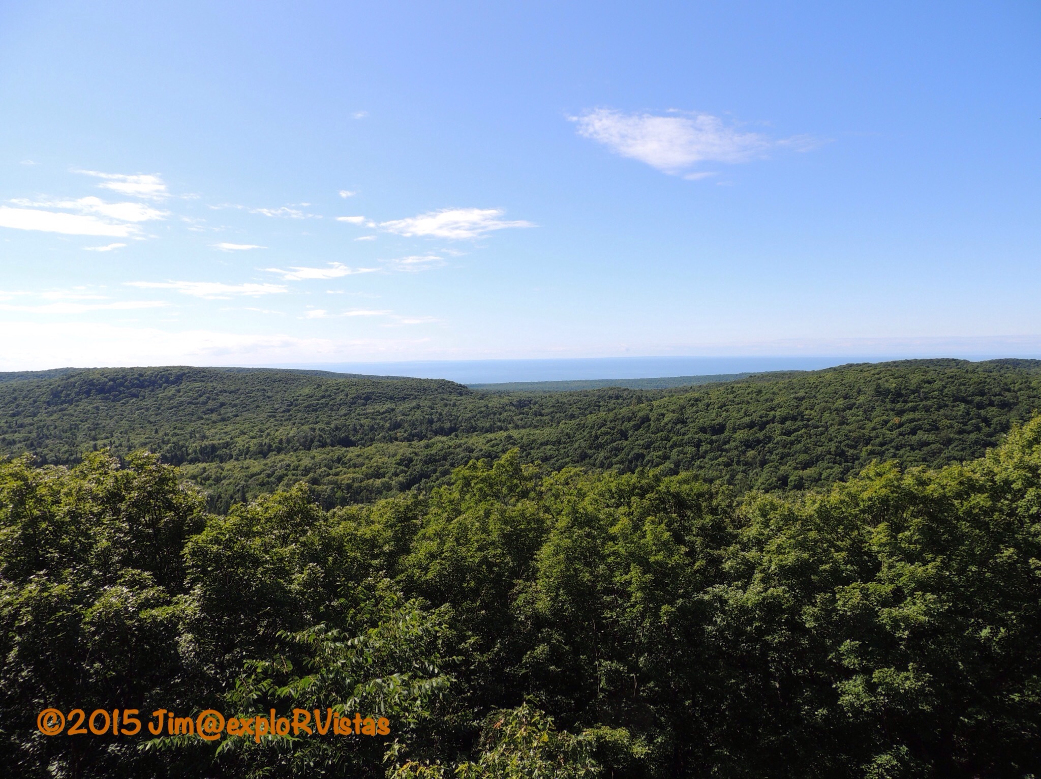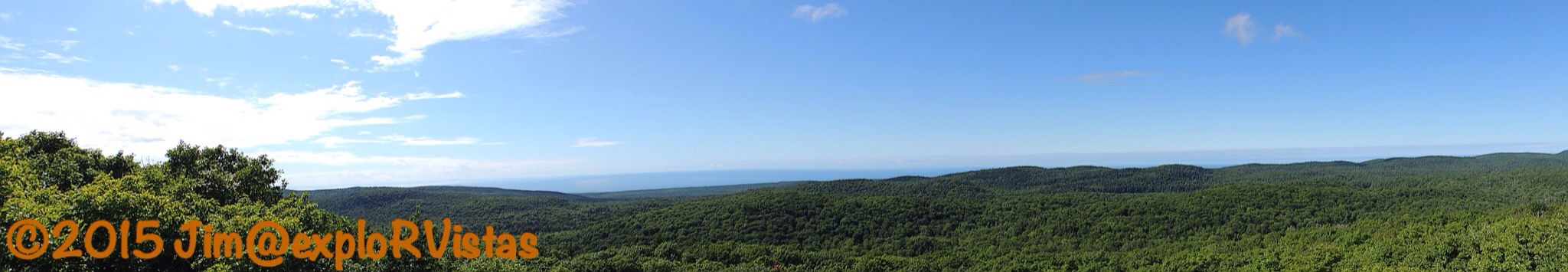 To offer some perspective, this photo is looking northwest. Lake of the Clouds and the Escarpment Overlook are hidden by the ridge a few miles away. Lake Superior can be seen in the distance.