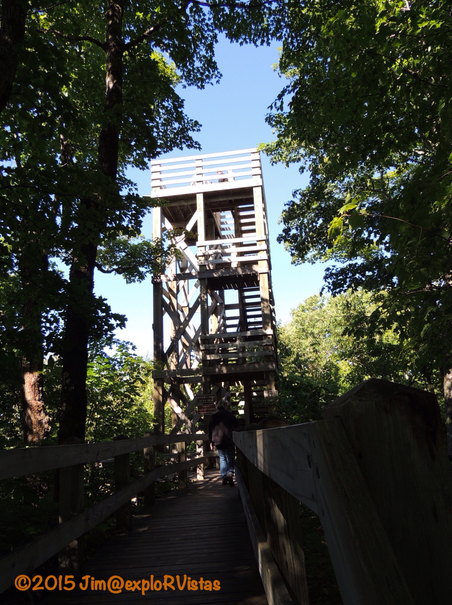 Up until the late 1950’s, Summit Peak in the Porcupine Mountains Wilderness State Park was thought to be the tallest peak in Michigan. Back then, it was known as ” the peak one mile south of Mirror Lake”. Thinking it was the highest point in Michigan at 1958 feet above sea level, the name ‘State Summit’ was decided upon. It was discovered shortly after that Mt. Curwood, 100 miles to the east, was 20 feet taller. At that point, the name ‘State Summit’ was changed to Summit Peak. It was then discovered in 1982 that Mt. Curwood’s neighbor, Mt. Arvon, was 11 inches taller. Granted, these two peaks are in some fairly remote wilderness, but it is still remarkable that those numbers were not officially surveyed until the year we were married! With that being said, neither Mt. Curwood or Mt. Arvon has any sort of structure at the top of them. Summit Peak has a 40 foot tower, which puts an observer at the top of Michigan! The only people possibly getting above that point are radio tower workers. 🙂
